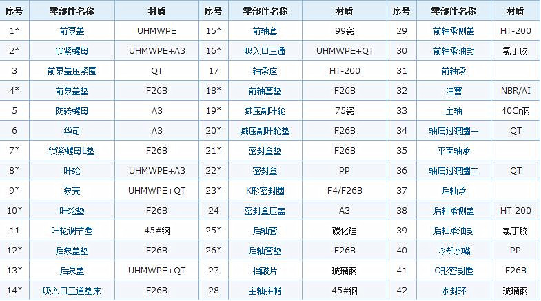 聚丙烯(P):用于無(wú)固相物料的清液的輸送。例如廢氣處理系統(tǒng)的逼壓噴淋泵(煙氣脫硫等)。