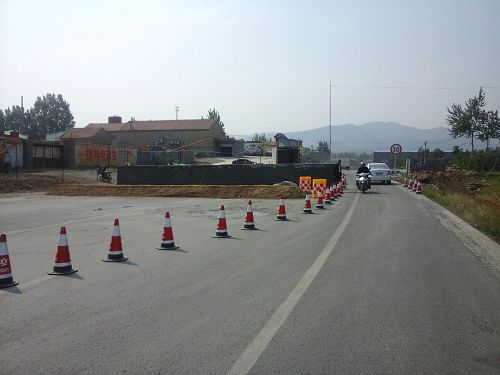 本項目位于濟南市章丘境內(nèi),途經(jīng)石屋、北明、南明、垛莊、山圣圈等村鎮(zhèn),全長28.19千米,工期為6個月,工程造價為5895.1萬元。為保證全線施工安全有序進行,首先在施工路段起點、終點處分別砌筑了高為1.5米的交通管制墻,其長度分別為15米和6米,截止目前交通管制墻已全部砌筑完成。