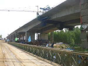 此項目的難點為小清河橋長682.8米,其主橋跨越小清河的跨度達50m+80m+50m,變截面為連續(xù)箱梁,施工工藝采用掛籃懸臂澆筑。