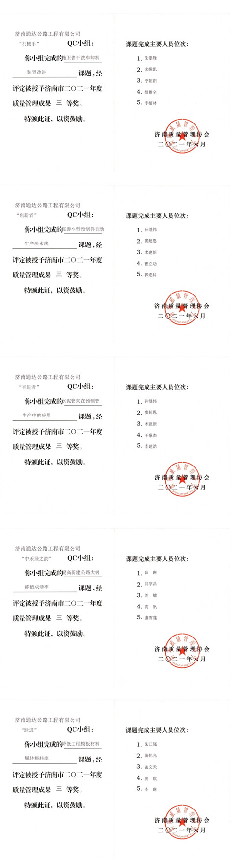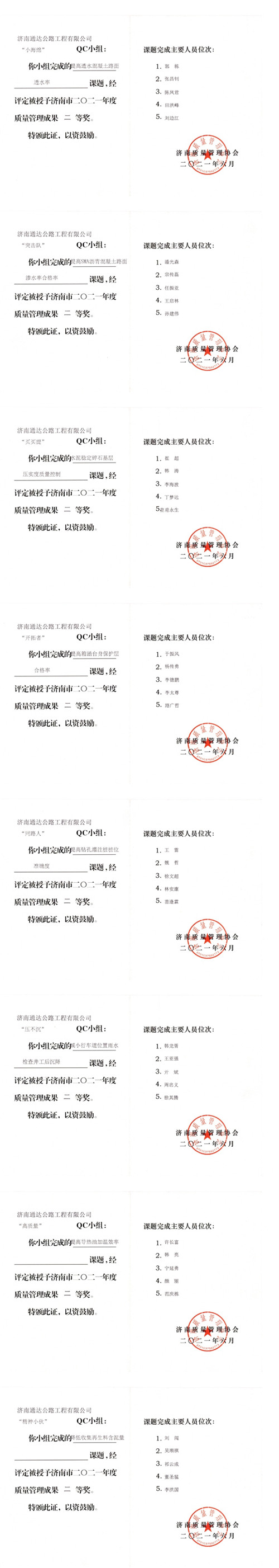 獲得二等獎單位有:濟南新中聯(lián)、市政中心、第三分公司、橋隧中心(兩項)、第一分公司、道材中心、第二分公司;