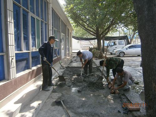 地方道路施工中心硬化辦公院落場地,加設(shè)排水系統(tǒng)