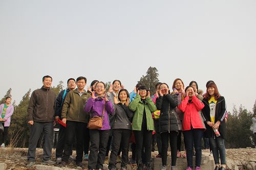 8:30分公司全體女同志按照活動(dòng)安排,分三組沿著指定路線向山頂“進(jìn)軍”,沿途中的樹木、花草在春風(fēng)中自在搖擺,參加活動(dòng)的同志在行進(jìn)隊(duì)伍中一片歡聲笑語,大家你一言、我一語的訴說著生活點(diǎn)滴和爬山感受。當(dāng)大家陸續(xù)到達(dá)山頂后,開始了活動(dòng)的第一個(gè)環(huán)節(jié)--集體合影和自由拍照,相機(jī)的鏡頭將一個(gè)個(gè)、一張張最美的笑臉定格在2016年3月5日這一天。山頂?shù)囊曇笆菍拸V的,是讓人釋放心情的好地方,基于此活動(dòng)的第二個(gè)環(huán)節(jié)就是“山谷回聲”,大家分組面向大山深處,大聲吶喊著“春天你好,大山你好,通達(dá)會(huì)越來越好”的口號(hào),雖然沒有久遠(yuǎn)的回聲,但每個(gè)人的身心卻得到了極大的放松。隨后活動(dòng)進(jìn)入到第三個(gè)環(huán)節(jié)“傳話”,三組隊(duì)員用肢體表演著給定的文字內(nèi)容,表達(dá)內(nèi)容在傳達(dá)中變得走形,大家就在這肢體表演的差異中感受著一種潛在的幽默,陣陣笑聲構(gòu)成一片歡樂的海洋。