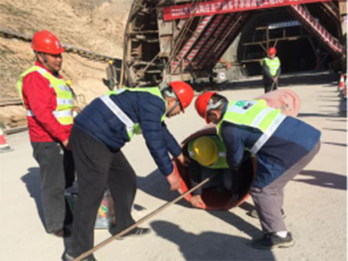 按平安工地要求,項目部成立安全管理小組,配備專兼職安全員,對隧道安全生產(chǎn)進行管理,建立平陰隧道智能化控制中心,人員從專門通道刷卡出入,隧道洞內(nèi)安裝人員定位系統(tǒng),監(jiān)控系統(tǒng),氣體檢測系統(tǒng)等措施保障了隧道施工人員的安全,同時洞內(nèi)設(shè)置緊急電話和逃生管道,配備相應(yīng)的緊急醫(yī)用藥品和食品,洞外準(zhǔn)備臨時鋼架、木材、鉆機、抽水機具等應(yīng)急物資,并編制相應(yīng)的隧道應(yīng)急預(yù)案,進行應(yīng)急演練,以有效應(yīng)對突發(fā)情況。隧道噴霧養(yǎng)生系統(tǒng)不僅保證了二襯混凝土養(yǎng)生,同時還起到隧道降塵效果,洞內(nèi)時刻保持濕法作業(yè),施工環(huán)境得到了很大改善。