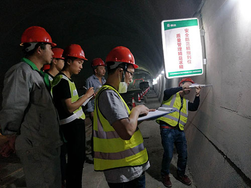 在施工過程中,為了全面提升工程質(zhì)量,打造平陰隧道品質(zhì)工程的建設(shè),項目部成立了質(zhì)量管理小組,明確各成員的職責(zé)和分工,及時對工程實體質(zhì)量進行檢測。施工現(xiàn)場各種標(biāo)示標(biāo)牌規(guī)范齊全,隧道開挖、超前地質(zhì)預(yù)報、仰拱防水以及鋼筋綁扎等工序嚴(yán)格按標(biāo)準(zhǔn)化進行施工,并委托有資質(zhì)的第三方進行監(jiān)控量測,及時為施工提供技術(shù)數(shù)據(jù),從源頭控制質(zhì)量,平陰隧道工程全方位的展現(xiàn)出了濟南通達(dá)公路工程有限公司的高標(biāo)準(zhǔn)管理水平。