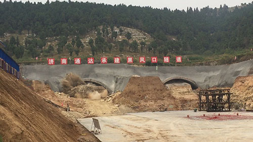 濟南通達(dá)公路工程有限公司承建的平陰隧道工程于2017年9月26日正式開挖掘進,歷時247天,平陰隧道右線于2018年5月30日順利貫通。平陰隧道位于濟南市平陰縣,玫瑰鎮(zhèn)與東阿鎮(zhèn)交界處,為雙向四車道公路隧道,分左右洞,兩洞間凈距約13米,起訖里程K319+495—K319+935,長440米,單洞寬13.75m,凈高8m,屬于小凈距短隧道,是省內(nèi)國省道在建五座隧道之一,也是濟南市國省道唯一在建隧道。