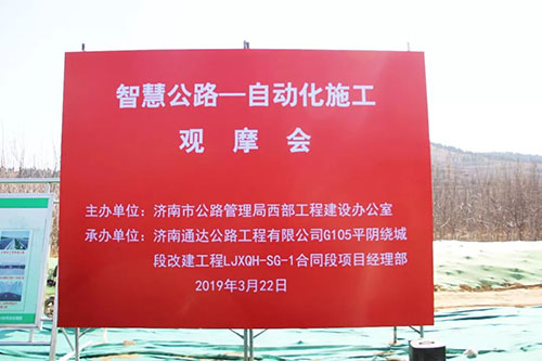 受邀參加觀摩會的濟南市局建設處、養(yǎng)護處、技術處、項目管理中心,平陰縣指揮部辦公室,西部工程建設辦公室,濟南金曰公路工程有限公司,濟南金衢公路勘察設計研究有限公司,濟南金諾公路工程監(jiān)理有限公司,山東省大通公路工程有限責任公司,在施工現場翹首以待公路建設行業(yè)在智能化時代出彩表現,共同見證在黨的十九大提出的建設交通強國宏偉目標的藍圖下,濟南公路建設行業(yè)向智能化發(fā)展邁出的堅實步伐。