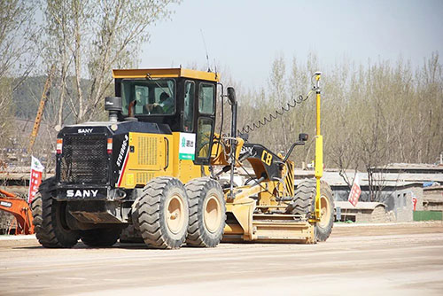 其次出場的是3D智能找平機,所用設備是裝有摩巴智能找平系統的三一190平地機。相同外表下的智能化功能是重要看點。它在衛(wèi)星GPS精準定位下展開工作,自動提取預先輸入系統的路面高程等信息。經系統處理,反饋給液壓模塊,液壓模塊控制鏟刀提升油缸的升降,從而實現自動找平的功能。它的使用將無需操作人員,由原來的技術員測量高程加機械找平變?yōu)槠降貦C自動找平,簡化了工序,更加高效和智能,可在人力、物力上節(jié)省大量成本。