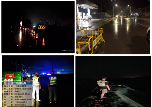 10日晚8點33分,S240濟(jì)陽項目部施工人員巡視全線路段情況。8點35分,S241濟(jì)南動物園段施工項目的值班人員,認(rèn)真進(jìn)行路段排查。8點45分,S101改建工程施工人員冒雨進(jìn)行巡路,及時關(guān)注施工路段情況。10點30分,G105項目管理人員正在施工路段進(jìn)行巡視。