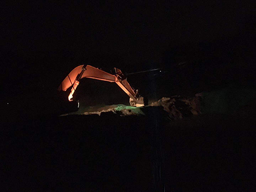 11日14:00至16:00,施工工作群進(jìn)行指揮調(diào)度,對章丘十九朗東皋埠村中橋河道進(jìn)行第二次開挖。施工人員冒著強(qiáng)暴雨全力抵御“利馬奇”的到來。