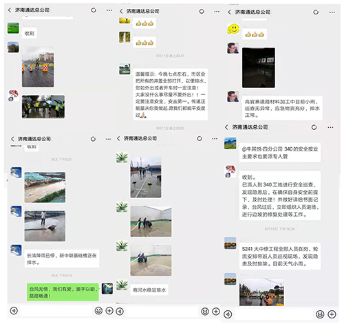 11日降雨仍在持續(xù),公司總經(jīng)理劉國楨全程在線調(diào)度各項工作。9:10分,防汛二級應(yīng)急預(yù)案全面啟動,密切關(guān)注著濟(jì)南市雨水情況。各項目部、拌合站點等單位隨時在工作群中發(fā)布全天巡視情況。