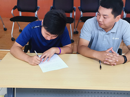 為使新員工上崗后能夠繼續(xù)加強(qiáng)培訓(xùn)與學(xué)習(xí),盡快掌握專業(yè)技能并能獨(dú)擋一面,師傅和徒弟共同簽訂了《師帶徒培訓(xùn)承諾書》,明確了各自的責(zé)任和義務(wù)。最后,全員共享“總經(jīng)理致新員工的一封信”,新員工們帶著公司總經(jīng)理及所有領(lǐng)導(dǎo)同事的希望與重托走上了各自的工作崗位,開啟了新的職業(yè)生涯。