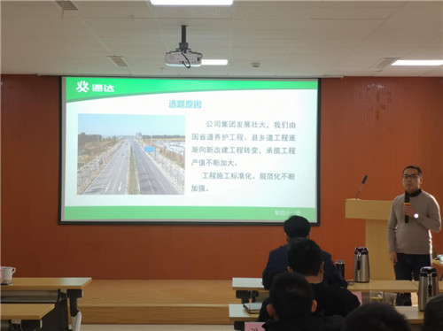 1月24日,公司工程管理部組織開展了一場別開生面的技術(shù)交流會(huì)。公司特邀山東職業(yè)交通學(xué)院老師董春暉、盧緒強(qiáng)兩名老師擔(dān)任評委,公司總經(jīng)理王秀林,副總經(jīng)理隗景富、李濤、劉海峰出席交流會(huì)并進(jìn)行評分。