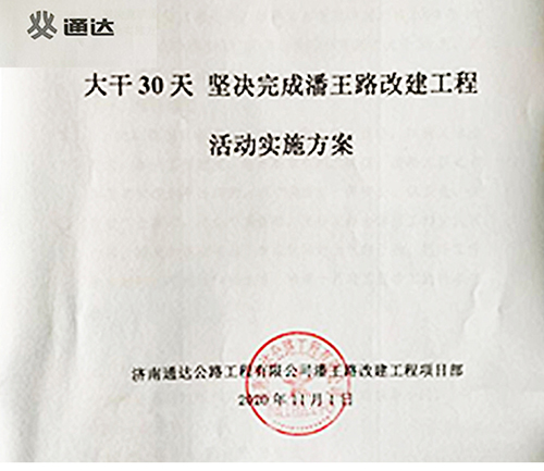 潘王路建設伊始,公司召集參建人員召開動員大會,全面部署施工任務,明確施工目標和責任,動員全體施工人員牢記“精益求精,盡善盡美”的質(zhì)量理念,牢固樹立大局意識和責任意識,充分發(fā)揚通達筑路人的實干擔當精神。