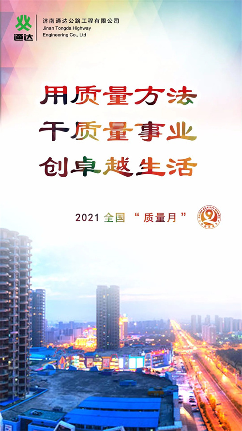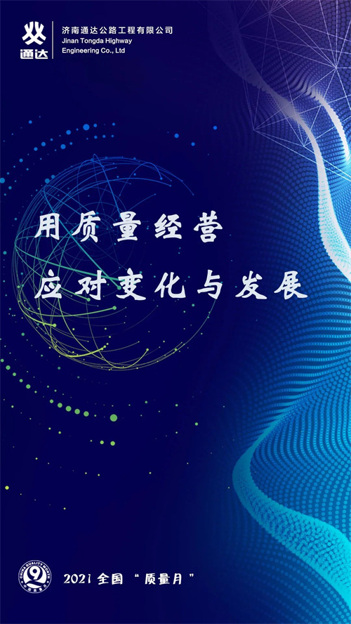 我們秉承“讓世界更通暢,讓生活更美好”的使命,一起來拼搏努力奮發(fā)向上,共同向著我們的理想和目標(biāo)前進(jìn)。產(chǎn)品質(zhì)量和工程質(zhì)量是企業(yè)的命脈,是質(zhì)量管理的核心根基,我們要主動滿足人民日益增長的美好生活需要,以質(zhì)量過硬、生產(chǎn)安全、低碳環(huán)保的工程服務(wù)和工程產(chǎn)品,彰顯通達(dá)質(zhì)量品質(zhì)。