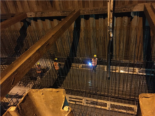 施工中,注重技術(shù)創(chuàng)新,力求提質(zhì)、加速、增效。一是在基坑土方開挖環(huán)節(jié),采用拉森Ⅲ型U型鋼板樁對全線基坑進(jìn)行支護(hù),對高于3米部分的土方進(jìn)行放坡開挖,卸除了土方的壓力,大大節(jié)省了圍囹支護(hù)所需時(shí)間和成本,提高了安全施工系數(shù)。二是實(shí)施多層次基坑防水措施,通過開挖土方在基坑15米外碼放、地面設(shè)置多條截水溝、鋼板樁圍擋等,嚴(yán)防地表水進(jìn)入基坑,打造了高標(biāo)準(zhǔn)的施工條件。三是為最大限度保障溝渠正常排水需求,在新建箱涵兩端改溝兩條,并適當(dāng)加大過水面積。以上措施在前段時(shí)間的強(qiáng)降雨天氣中得到了現(xiàn)實(shí)意義的檢測,基坑防水、排水情況良好,未出現(xiàn)基坑進(jìn)水、溝渠阻水等情況發(fā)生。