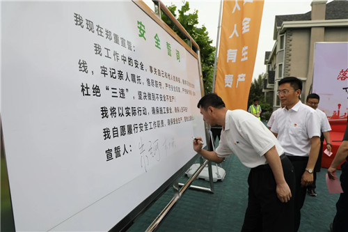 隨后,與會人員舉起右手,共同進(jìn)行安全宣誓,并在展板上簽字,讓每一位員工牢記安全誓詞,緊繃安全這根弦,堅定安全信心和決心。