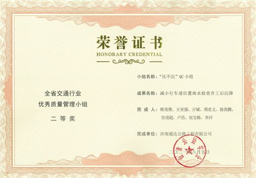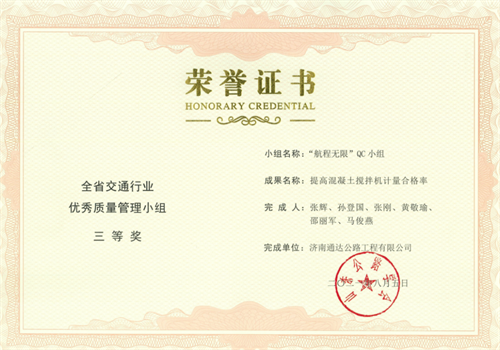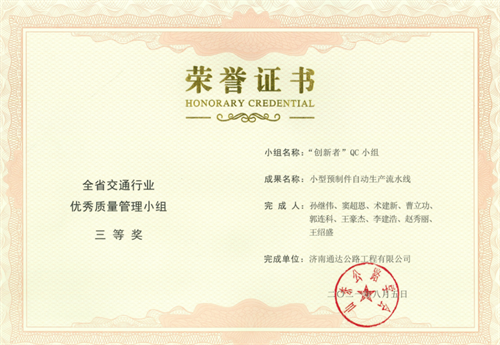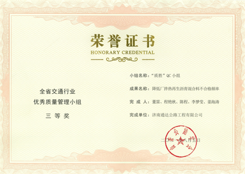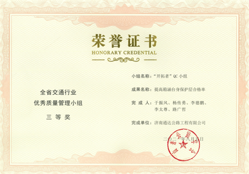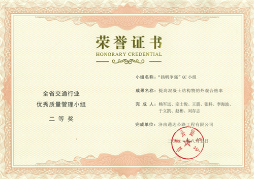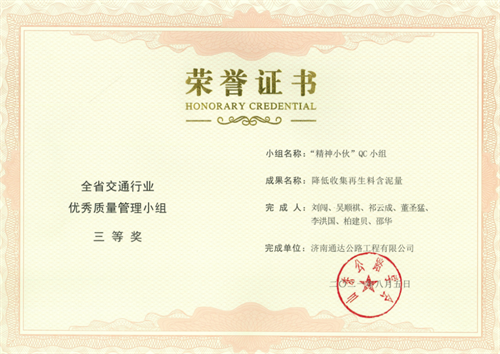 其中,榮獲全省交通行業(yè)優(yōu)秀質(zhì)量管理小組二等獎2項,三等獎5項;榮獲山東省優(yōu)秀質(zhì)量管理小組三等獎2項,突破公司歷年獲獎成果新高,QC活動質(zhì)量持續(xù)提升。