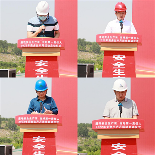 6月1日上午,在旅游路東延SG-4標(biāo)段項目施工現(xiàn)場,由濟(jì)南市交通運(yùn)輸事業(yè)發(fā)展中心主辦,濟(jì)南通達(dá)公路工程有限公司等單位聯(lián)合承辦的2022年“安全生產(chǎn)月”活動舉行啟動儀式。市交通運(yùn)輸事業(yè)發(fā)展中心副書記朱立河、中心安全服務(wù)部部長姜建平、重點(diǎn)工程推進(jìn)部張寶香、金諾公路工程監(jiān)理有限公司總經(jīng)理韓作新、通達(dá)公司總經(jīng)理王秀林、旅游路東延項目各施工、監(jiān)理、代建單位代表出席本次活動。