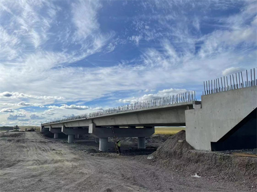 項(xiàng)目自2021年3月進(jìn)場(chǎng),因各項(xiàng)手續(xù)辦理及內(nèi)蒙特殊的地域氣候環(huán)境等因素影響,2021年完成了項(xiàng)目駐地及場(chǎng)站建設(shè)、各類梁板預(yù)制及便道的修筑工作等;2022年完成了全線路基及橋涵的主體施工工作,并于7月份開始了水穩(wěn)底基層的攤鋪工作;2023年全面轉(zhuǎn)入了基層及面層的攤鋪工作。