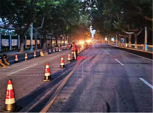 在施工過程中,要求分包隊伍嚴(yán)格按照技術(shù)規(guī)范要求,確保維修質(zhì)量達(dá)到標(biāo)準(zhǔn);加強(qiáng)現(xiàn)場安全管理,規(guī)范擺放路面警示標(biāo)識,路口24小時專人指揮,在保障人員安全的同時也避免施工過程中出現(xiàn)車輛擁堵的情況。加大日常對道路的巡查力度,做到第一時間發(fā)現(xiàn)、第一時間整改,最大限度確保道路通行安全。同時,在施工現(xiàn)場設(shè)置防暑降溫藥品、綠豆湯,全力做好高溫期間施工人員的后勤保障工作。
