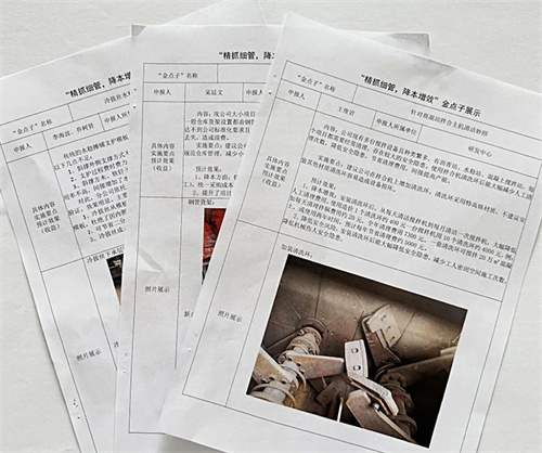 活動第二階段為“專項提升、協(xié)同推進(jìn)”階段,從規(guī)章制度、工作流程、項目經(jīng)營等方面提升管理機(jī)制,改善組織運營效率,提升項目履約水平與創(chuàng)利能力;每月組織開展“精抓細(xì)管,降本增效”金點子征集活動,制定《管理改善和提升工作臺賬》,號召全體職工出謀劃策,集思廣益,助力公司降本增效,努力構(gòu)建持續(xù)創(chuàng)新、不斷超越的長效機(jī)制。