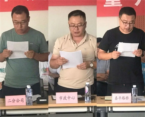 儀式上,工程管理部經(jīng)理季昌偉宣讀了《“質(zhì)量月”活動實施方案》,明確了活動安排,為下一步工程質(zhì)量控制提出了要求。二分公司、市政中心、泰平路橋分別匯報了項目施工進展狀況、質(zhì)量管理措施、經(jīng)驗教訓以及下一步工作計劃,并作表態(tài)發(fā)言。
